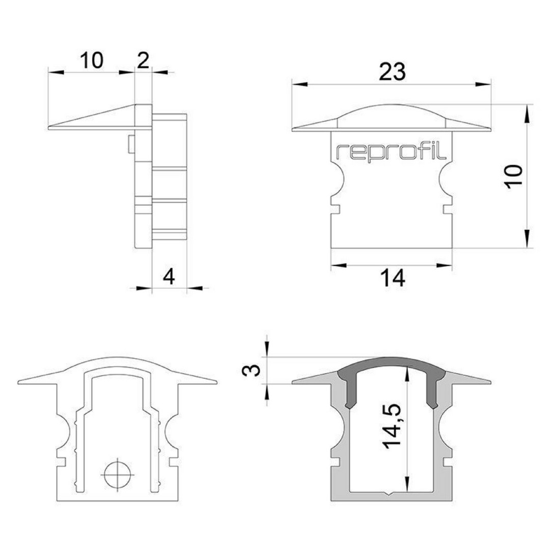 Profil Endkappe - Endkappe F-ET-02-08 Set 2 Stk, Weiß